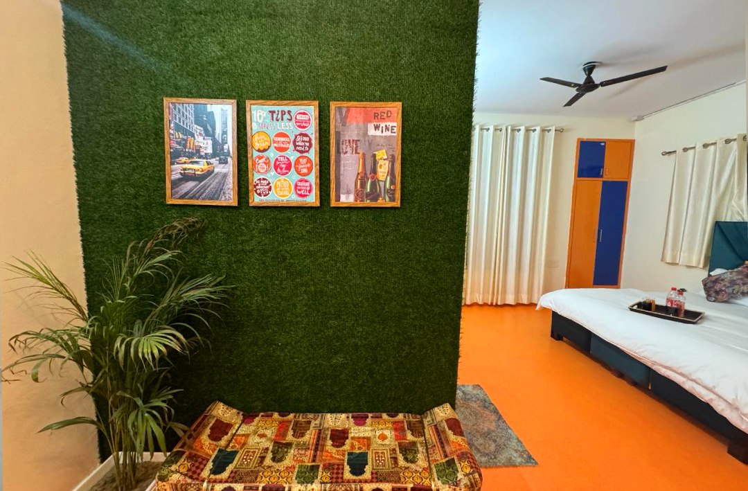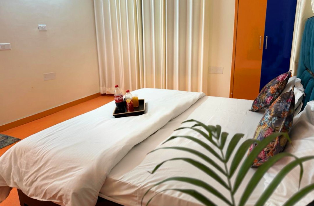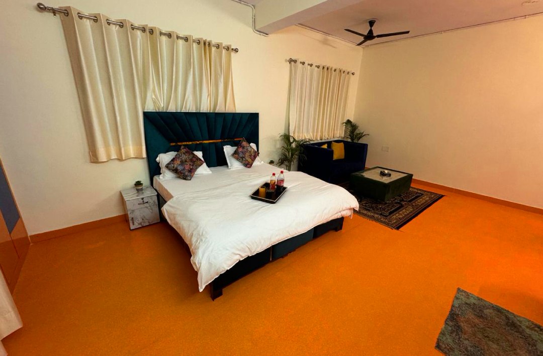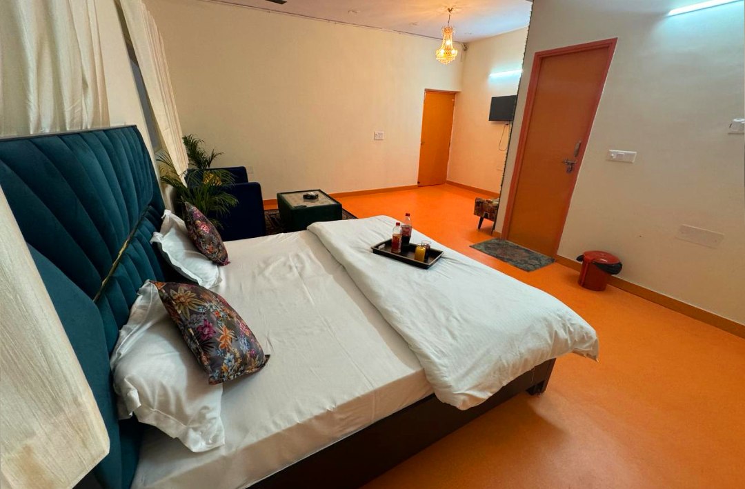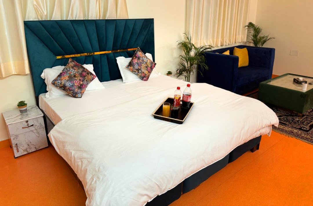 The room offers a double bed, suitable for couples or single occupants.Guests can enjoy views of the city from the rooms, adding to the overall ambiance. With dimensions of 15*20 square feet, the room offers sufficient space for guests to move around comfortably. The room is equipped with a study table, WiFi, a sitting area, and air conditioning for the comfort and convenience of guests. Additionally, mineral water is provided. The accommodation offers laundry services for guests, with charges applicable as per usage. These features cater to guests seeking a comfortable and convenient stay, with amenities that facilitate both relaxation and productivity.